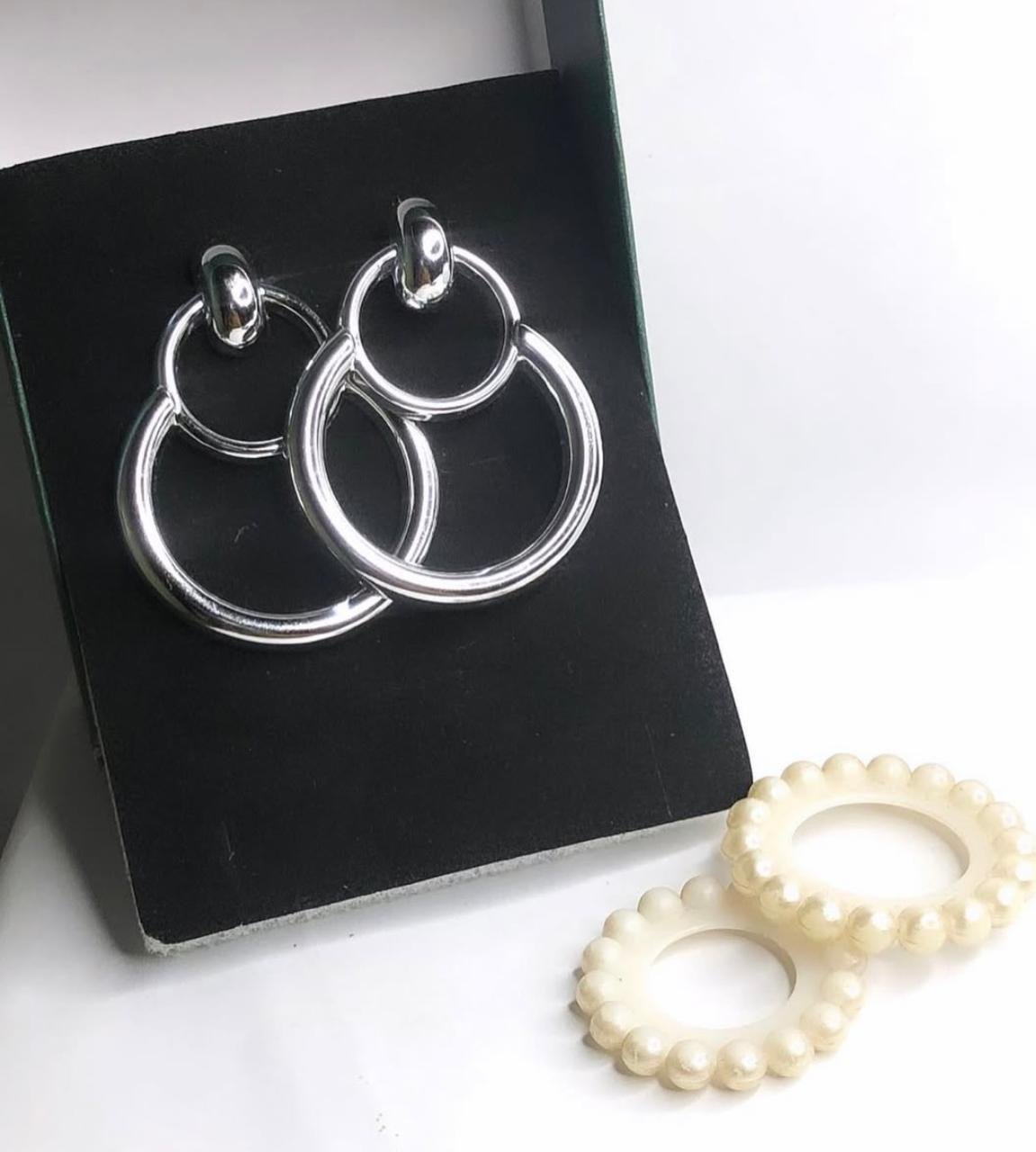 Be the first to review “Double Circle Drop Stud Earrings, Polished Alloy Steel, 2 cm, Gold”