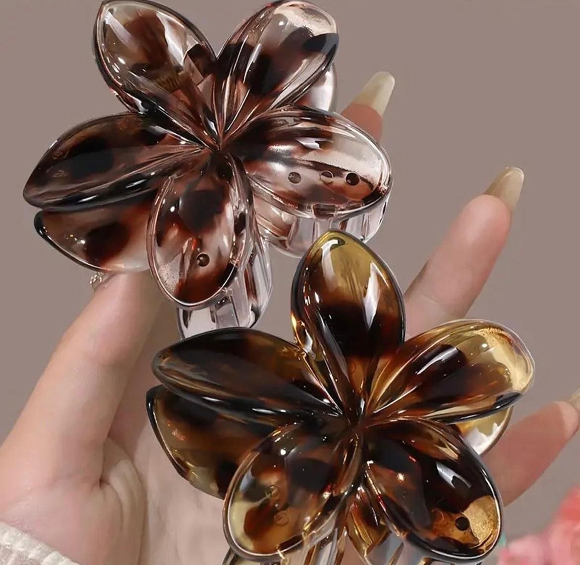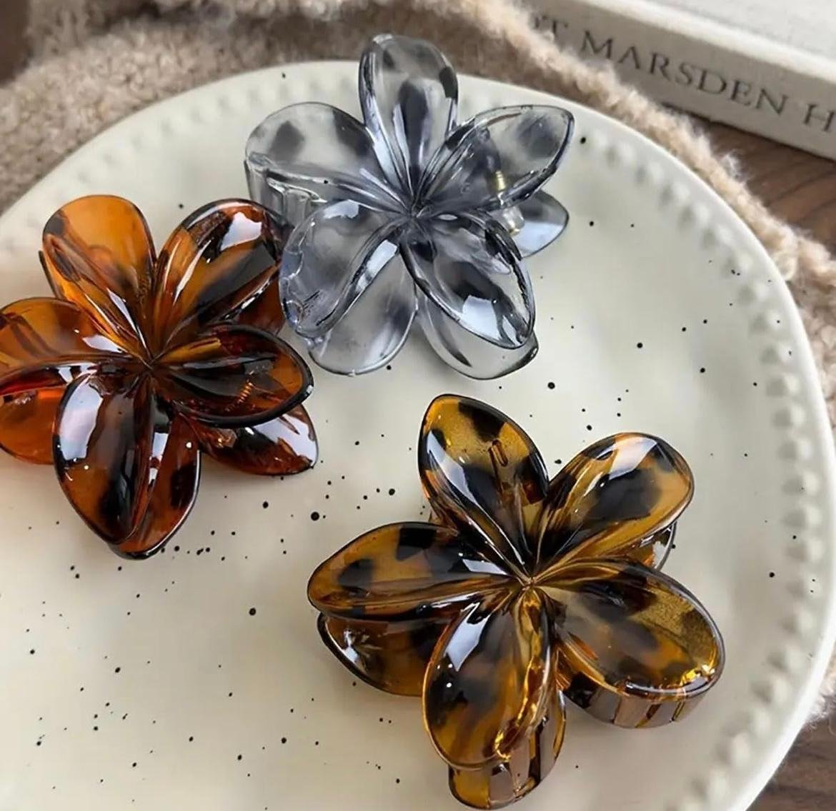 - PREMIUM DESIGN: Elegant flower-shaped hair clips made from durable acrylic material in 6 beautiful translucent colours – clear, smoke grey, amber, orange, pink, and deep black