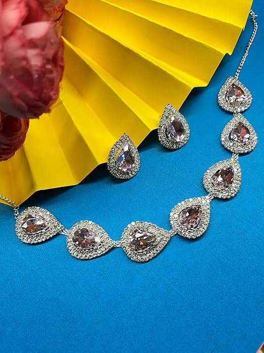 • NECKLACE DETAILS: Features seven connected teardrop-shaped pendants with pink centre stones and clear crystal borders
