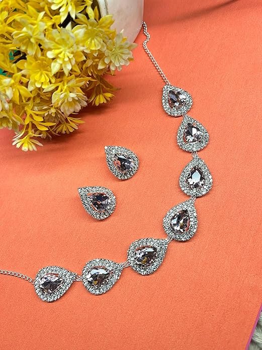 • MATCHING EARRINGS: Coordinating teardrop-shaped stud earrings complete the sophisticated jewellery set