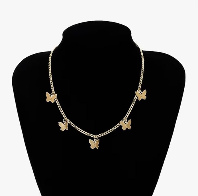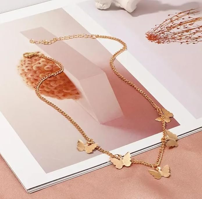 - BUTTERFLY CHARMS: Five symmetrical butterfly pendants evenly spaced along the chain for balanced aesthetic appeal