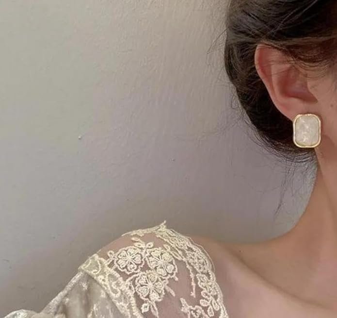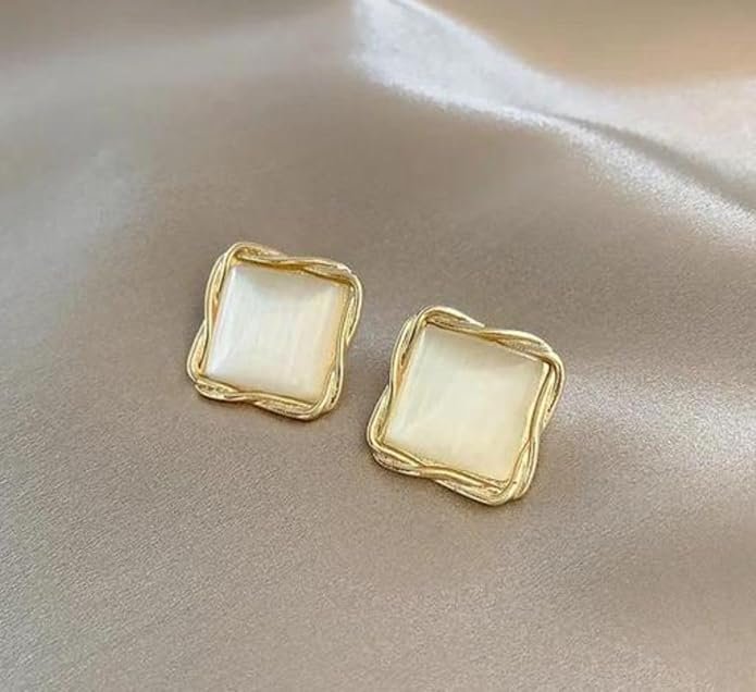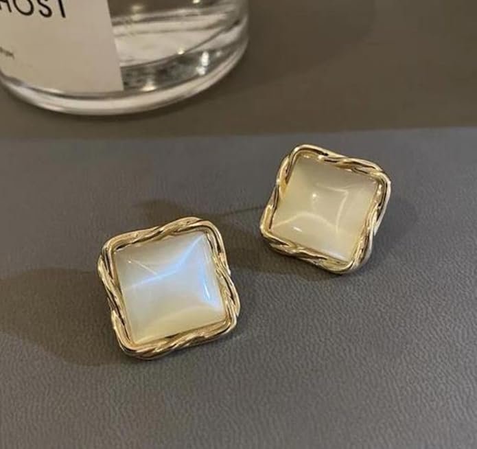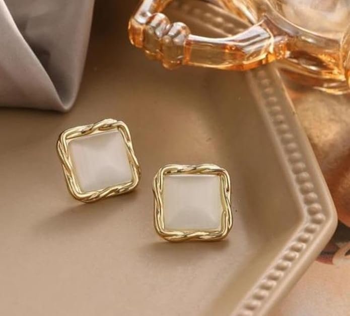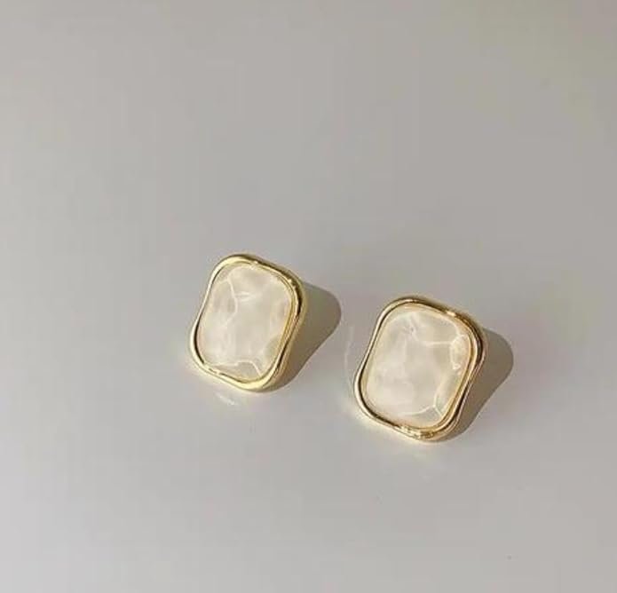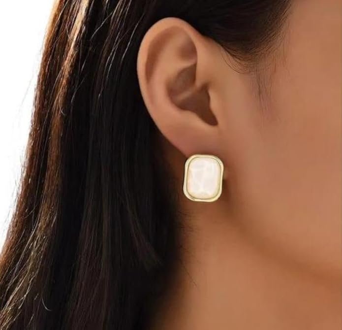 Elevate your accessory collection with these sophisticated rectangular stud earrings. The elegant design features creamy white stones set in luxurious gold-toned frames, creating a perfect balance of classic and contemporary style. The smooth, luminous surface of the stones catches light beautifully, while the secure backing ensures comfortable all-day wear. These versatile earrings complement both casual and formal attire, making them an essential addition to any jewellery box. The substantial yet lightweight construction makes these earrings suitable for regular wear, while the timeless design ensures they’ll remain stylish for years to come. The rectangular shape offers a modern geometric appeal that stands out from traditional round studs, while maintaining a refined aesthetic suitable for any occasion.