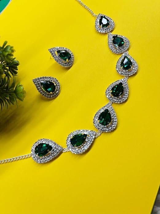 Be the first to review “Green Crystal Necklace Set With Earrings, Pear-Shaped Crystals”