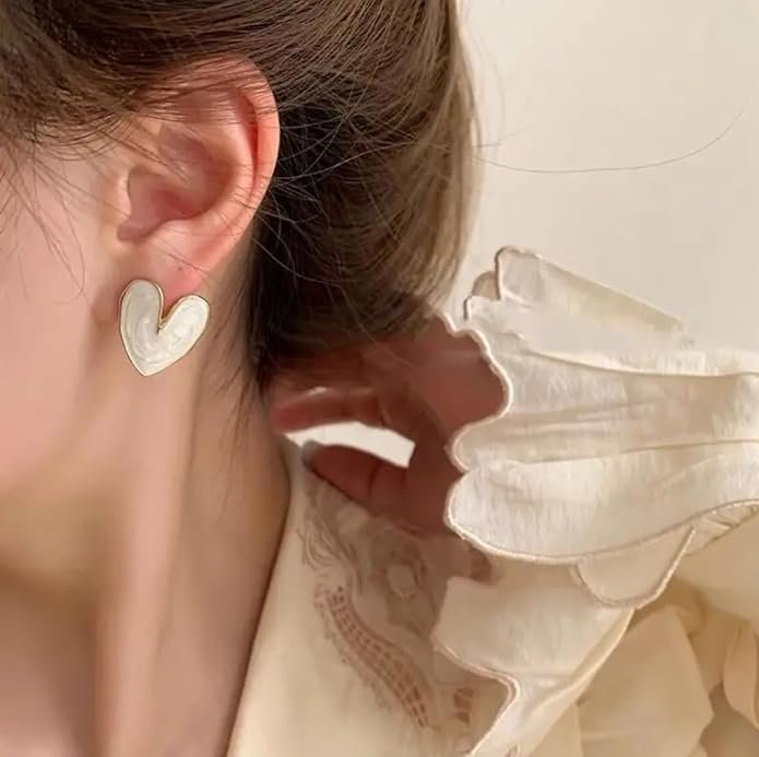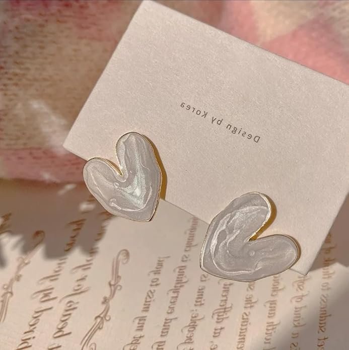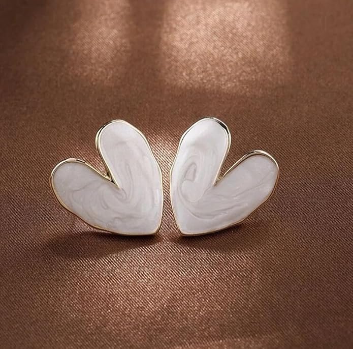 • ELEGANT DESIGN: Heart-shaped stud earrings featuring a stunning marble-effect pattern in white with delicate gold-tone trim