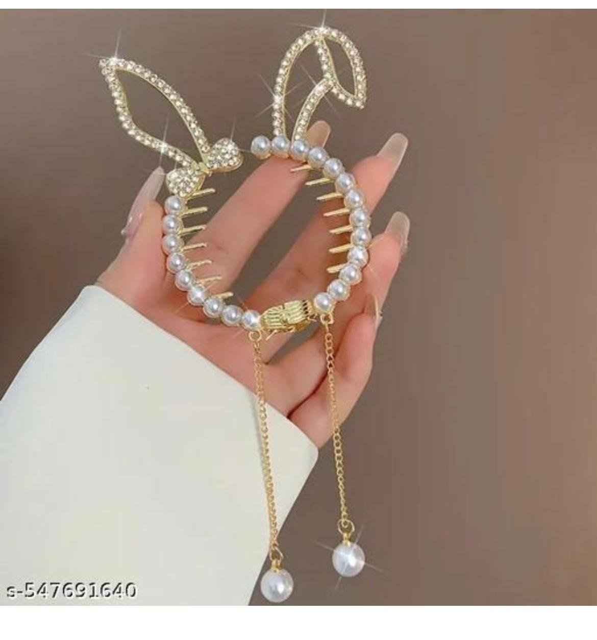 Be the first to review “Pearl and Crystal Butterfly Hair Clutch with Hanging Chain, Gold-Toned Metal, Decorative Hair Accessory”