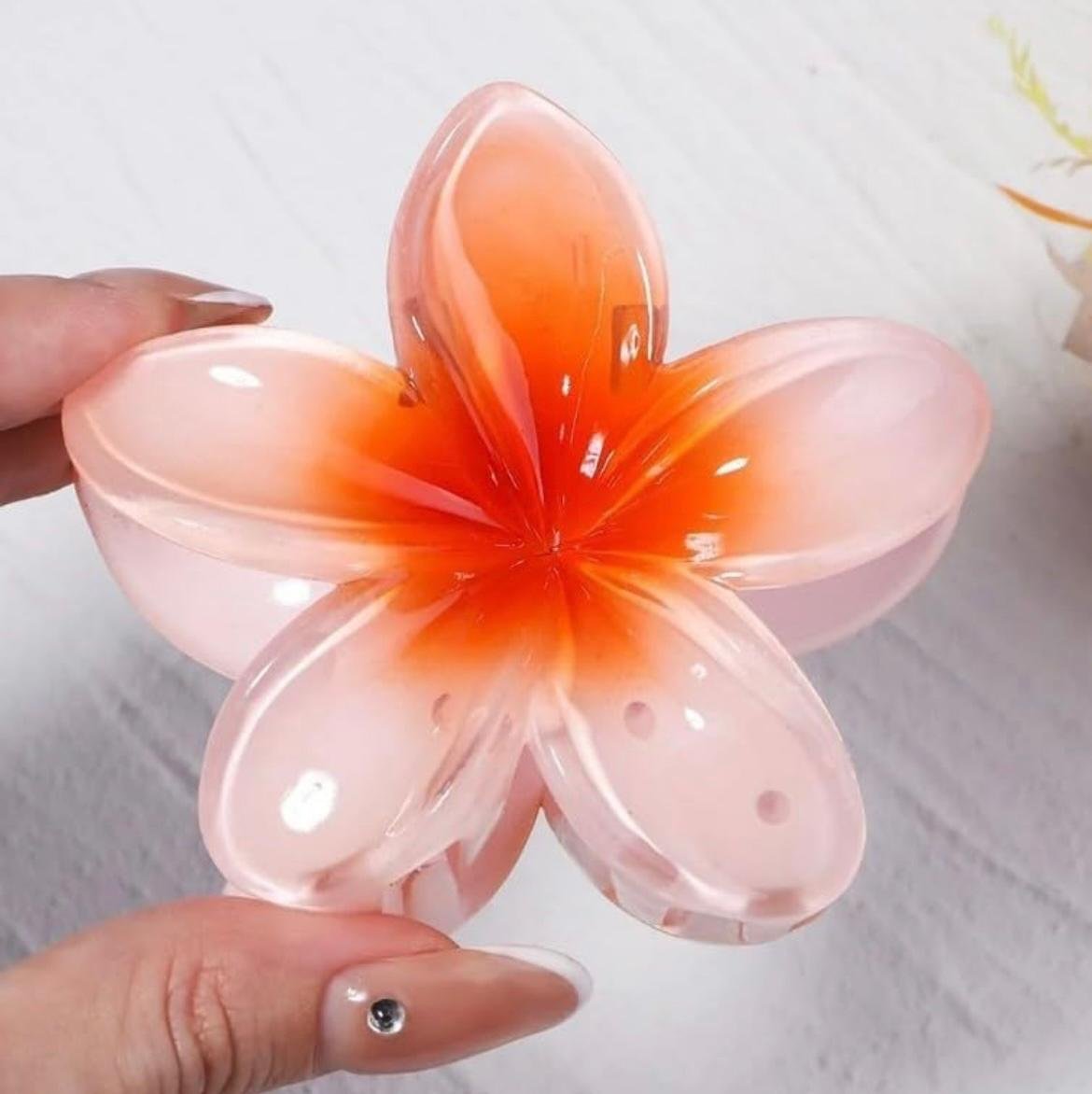 Transform your look with these enchanting Plumeria hair clips that bring a touch of tropical paradise to your hairstyle. Each set includes six vibrant colours – coral pink, purple, yellow, turquoise blue, hot pink, and soft pink – perfectly capturing the natural beauty and gradient colouring of the beloved frangipani flower. These beautifully crafted barrettes feature a glossy, translucent finish that catches the light magnificently, creating a stunning visual effect. The flower design measures approximately 5 centimetres across, making it an ideal size for both everyday wear and special occasions. Perfect for beach holidays, summer festivals, or adding a splash of colour to your daily ensemble. The secure clip mechanism holds your hair firmly in place while being gentle enough to prevent tangles. These versatile hair accessories complement various hairstyles and can be worn individually or grouped together for a more dramatic effect. Suitable for all hair types and textures, these clips add a perfect finishing touch to both casual and dressy outfits.